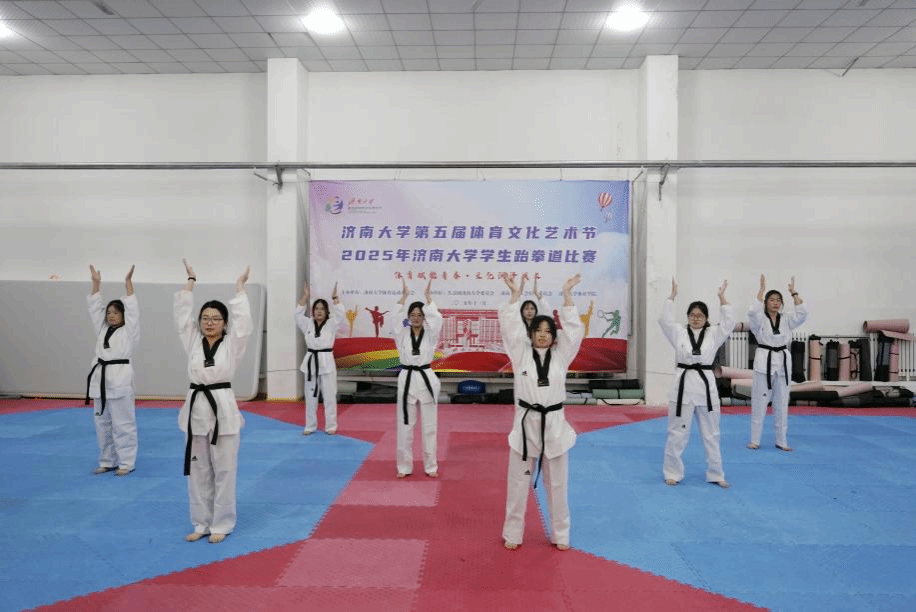 学子身着统一道服,以昂扬姿态亮相赛场,在品势、跆舞、快腿等多个项目中展现青春风采与竞技实力。赛前,队员们利用课余时间反复磨合队形,通过录制训练视频回放分析,打磨动作细节,优化动作衔接。经过数周的系统训练,团队配合愈发默契流畅。赛场上,参赛队员精神抖擞、斗志昂扬,一招一式尽显跆拳道的刚健与沉稳,而跆拳道舞则创意十足,将舞蹈美感与跆拳道的力量感完美融合,博得了评委们的青睐。