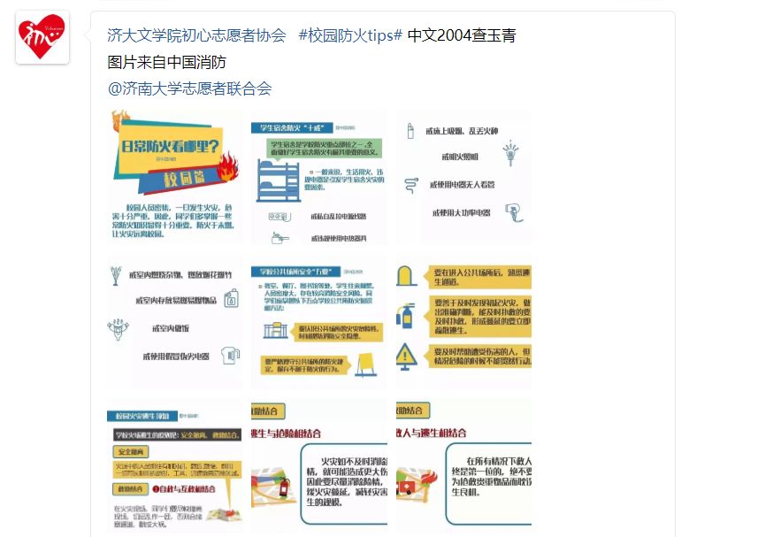 初心志愿者协会敬老服务队组织开展了为期一周的消防周征稿活动,此次活动于线上开展,学生参与度高,进展顺利。