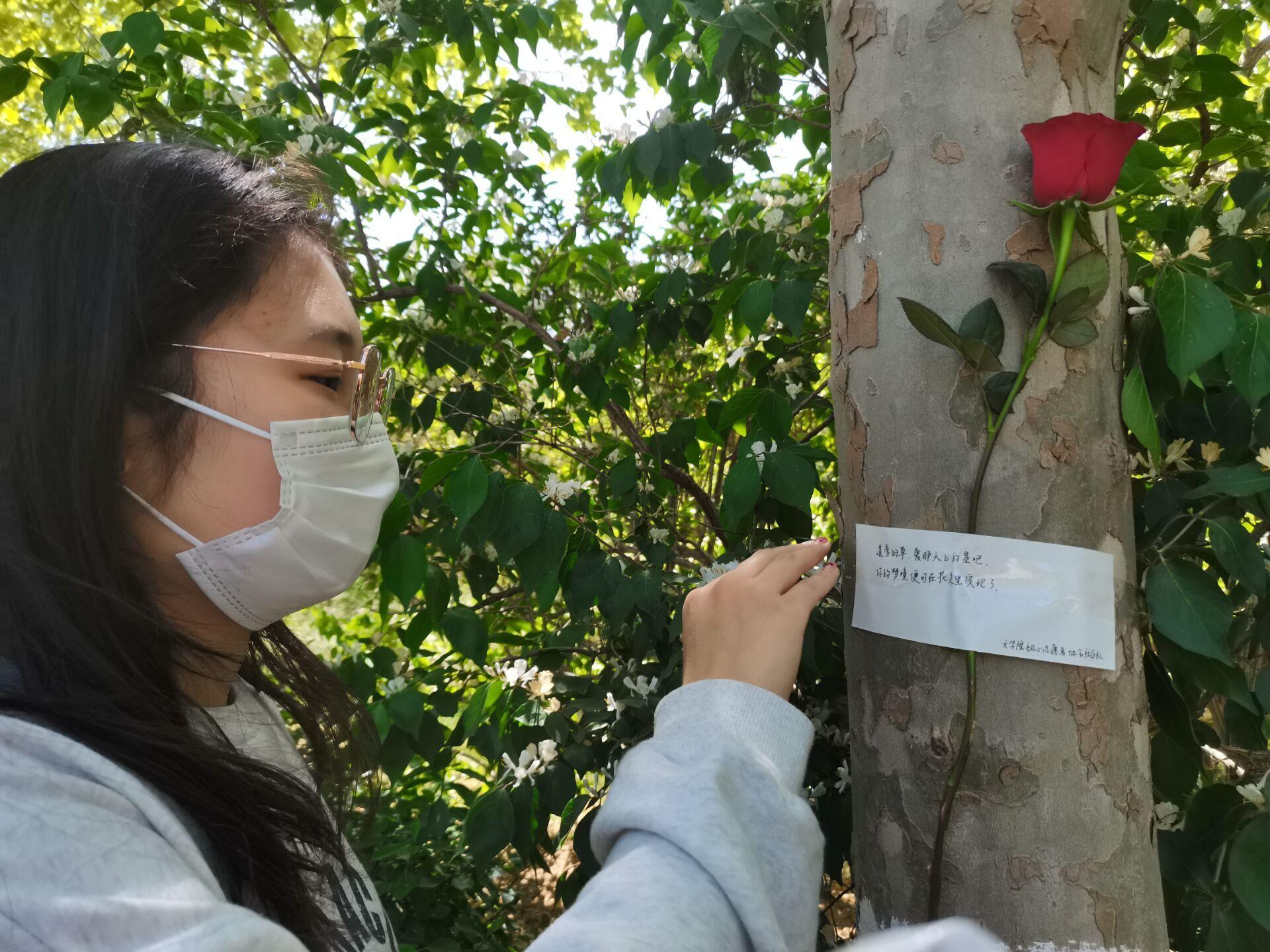 志愿活动于4月18日上午十点在北苑八食堂广场举行。志愿者在沿路的电灯杆、树干等位置粘贴纸条和玫瑰花,并在纸条上书写了情诗。活动吸引了许多老师和同学的围观和参与。同学们遇到心仪的花朵和情诗时,可以将其取走,赠送给恋人或友人。活动结束后仍有剩余的几支玫瑰花,志愿者们将其赠送给了校园中的情侣,他们在收到花后,向志愿者们表达了喜悦和感谢。