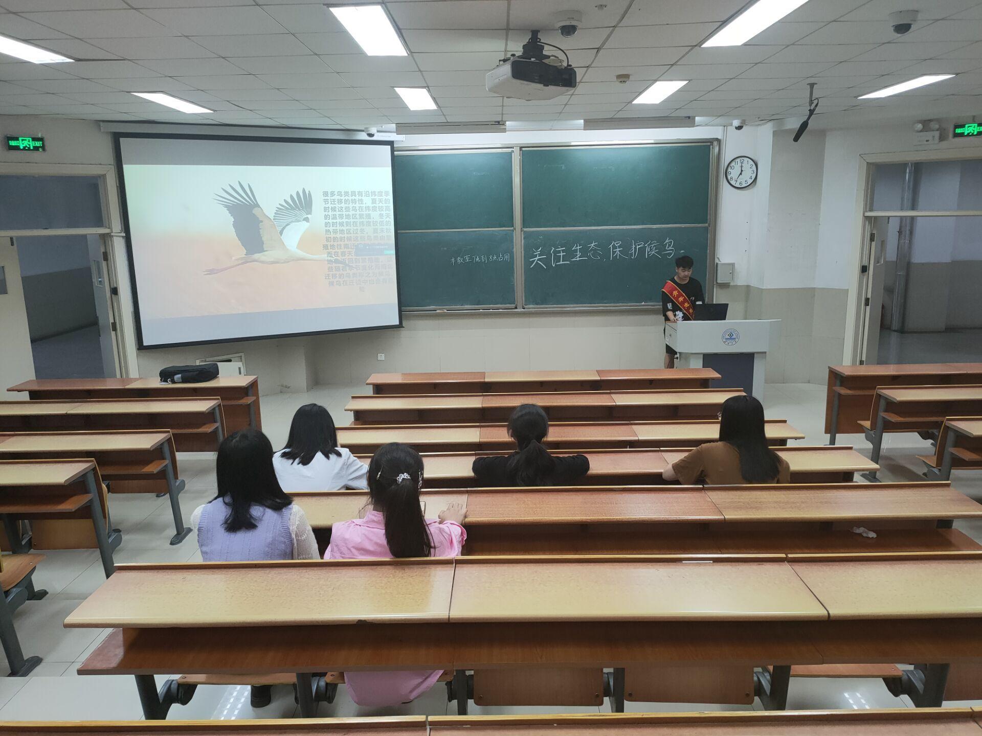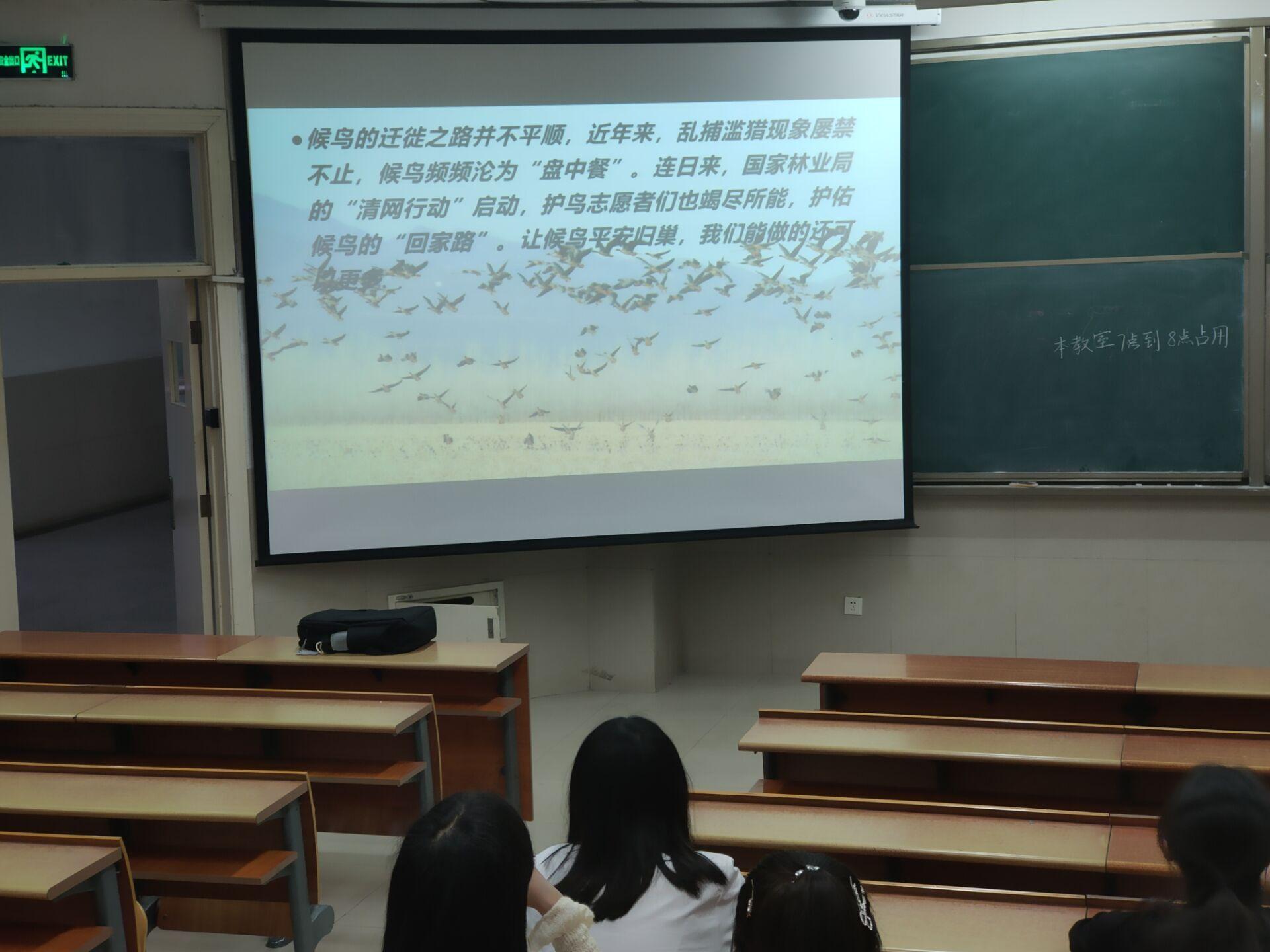 初心志愿者协会实践队在11教1102教室举办以“关注生态,保护候鸟”为主题的纪录片观赏活动。