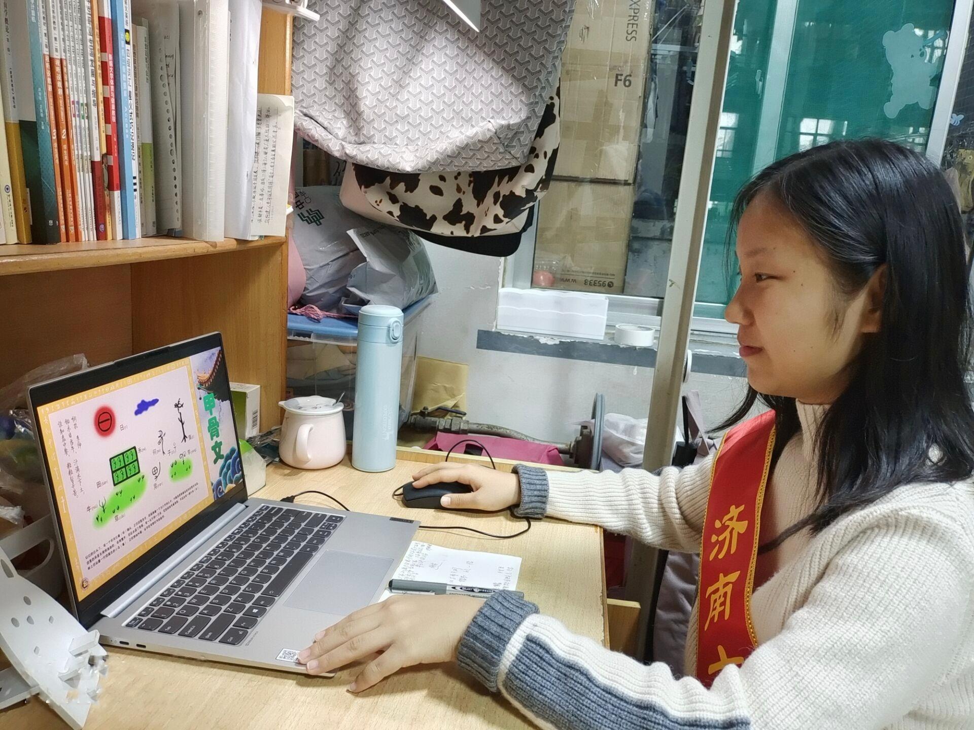 活动开始前,志愿者们在网络上查阅了我国书法的相关知识,通过研究讨论,最终确定出了图文结合、寓教于乐的教学方式。在视频录制过程中,志愿者们用几个直观的甲骨文象形字引出主题并通过生动有趣的甲骨文猜字小游戏充分调动起了小学生们的学习兴趣。紧接着志愿者们为同学们具体、形象地展示了我国文字悠久的发展历程。最后,志愿者们通过结合作品叙述人物简介的形式展示了我国部分著名书法家的作品。在轻松欢快的氛围中,小学生们学习到了很多有关书法的知识。视频录制结束后,志愿者们整理汇总课程资料,为后龙小学的同学们展开了精彩的线上教学活动,通过后龙小学的老师拍摄同学们观看教学视频的情景,志愿者们及时得到了意见反馈。此次视频录制活动中同学们观看视频时的热情高涨,脸上洋溢的微笑,让我们志愿者的工作和奉献得到了认可。