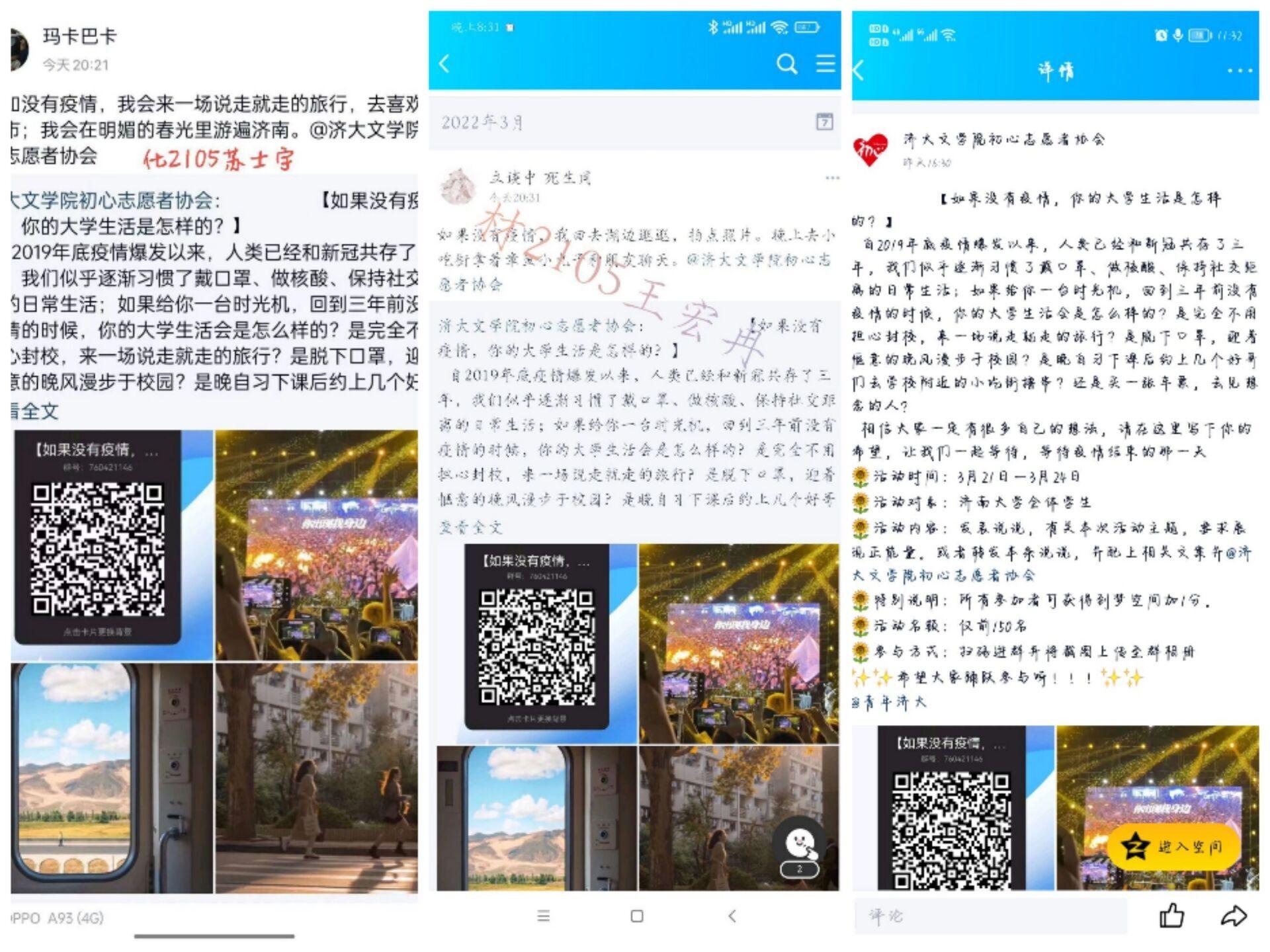 初心志愿者协会于3月21日至3月24日在线上开展了“疫后畅想,心有远方”活动,迎来了广大同学的积极参与。