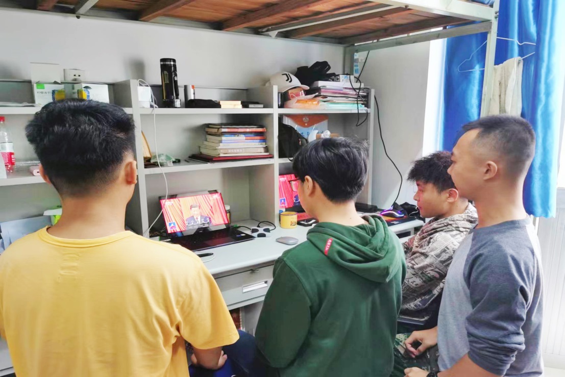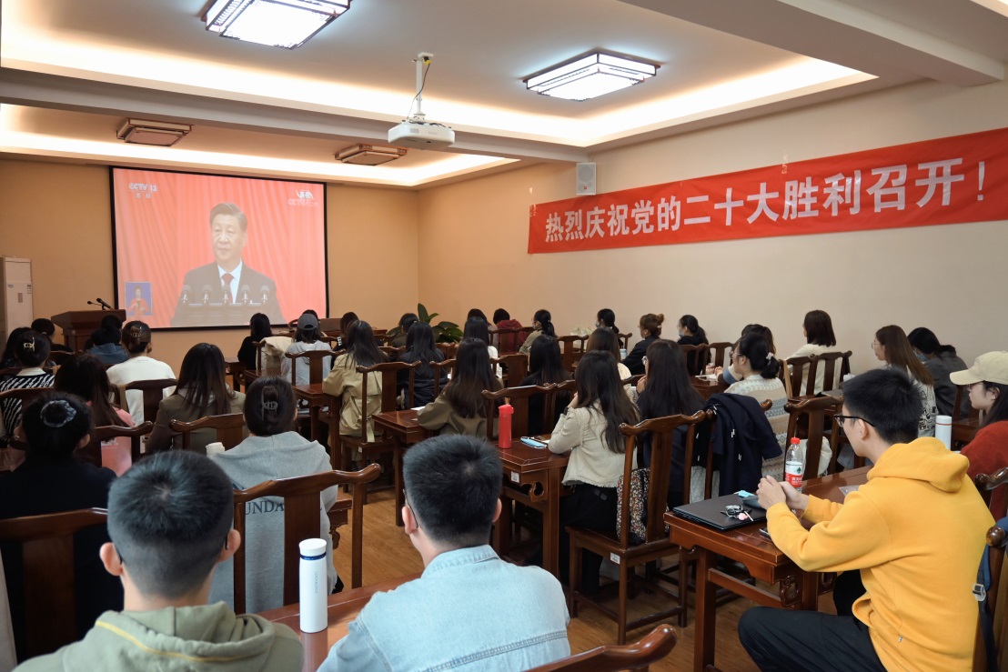 党委理论中心组、学生党支部和院级学生组织以集中观看的方式在学院各会议室收看大会开幕式,第一时间学习领会大会精神。