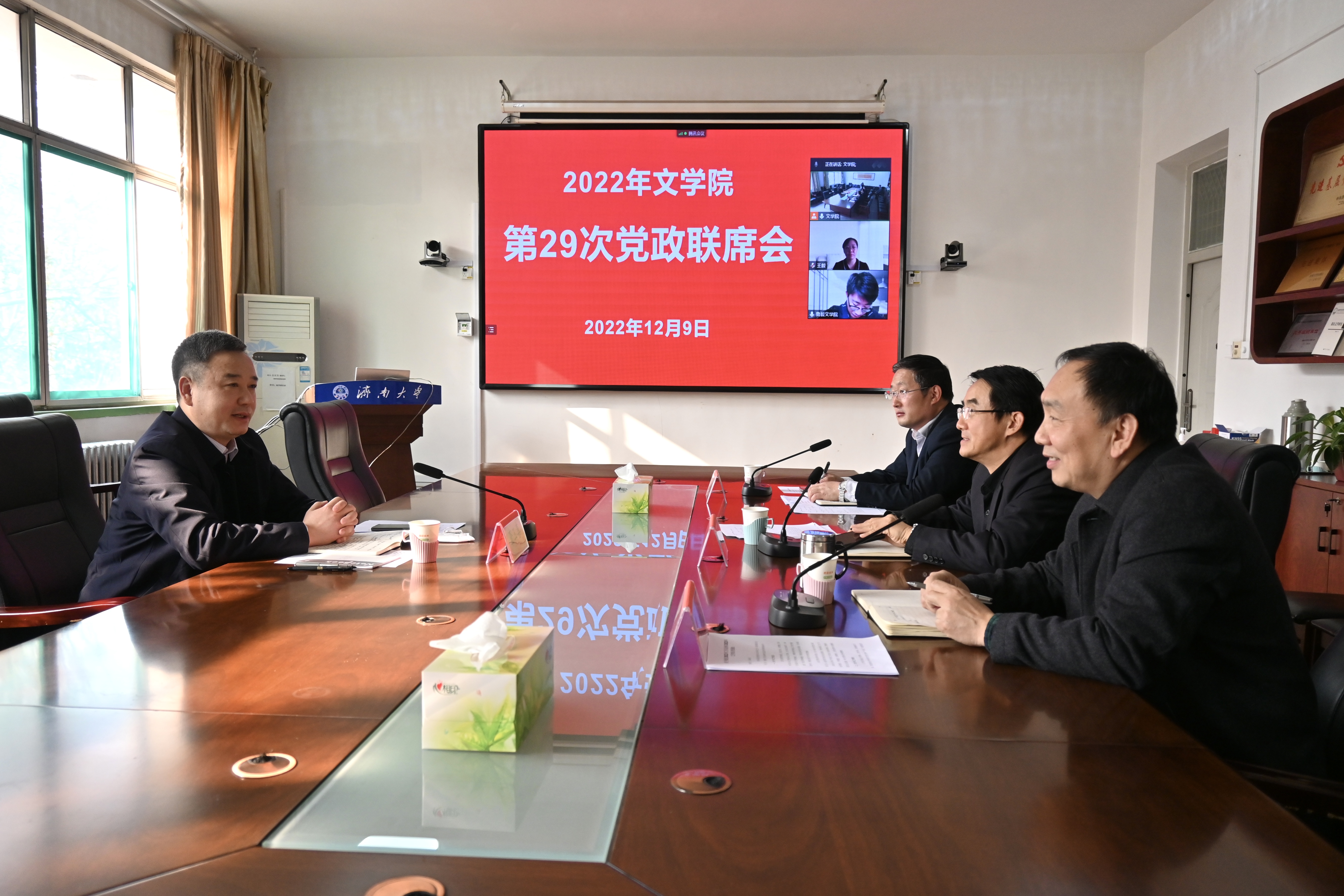 查玉喜首先向奋战在抗疫一线的全体教职员工表示慰问和感谢,并对学院一年来取得的工作成效给予充分肯定。他表示,本次党委会、党政联席会主题鲜明、准备到位,程序规范、高效有序,较好地贯彻了民主集中制,结论科学清晰,责任落实明确。对学院今后工作及更好地提高会议成效提出了四点建议:一是锚定高质量发展、聚焦“冲一流”目标。落实好学校党委提出的“五个始终坚持”,做到“五个表率”,发挥好政治引领、工作引领、目标引领的作用。二是狠抓学校第四次党代会精神、学院“十四五”规划落实。拟出任务书、时间表、路线图,挂牌作战、台账管理,力争学院工作再上新台阶,促进学校工作开新局。三是紧扣铸魂育人、狠抓师资队伍建设。要继续引育并举提升师资水平,努力教师们提供干事创业的暖心氛围;坚持“五育并举”、立德树人,做好学生思想教育工作。四是坚持统筹兼顾、做好安全稳定工作。解放思想,守正创新,对传统工作去粗取精,持续做好政治安全、意识形态安全、舆情监控、安全稳定工作。