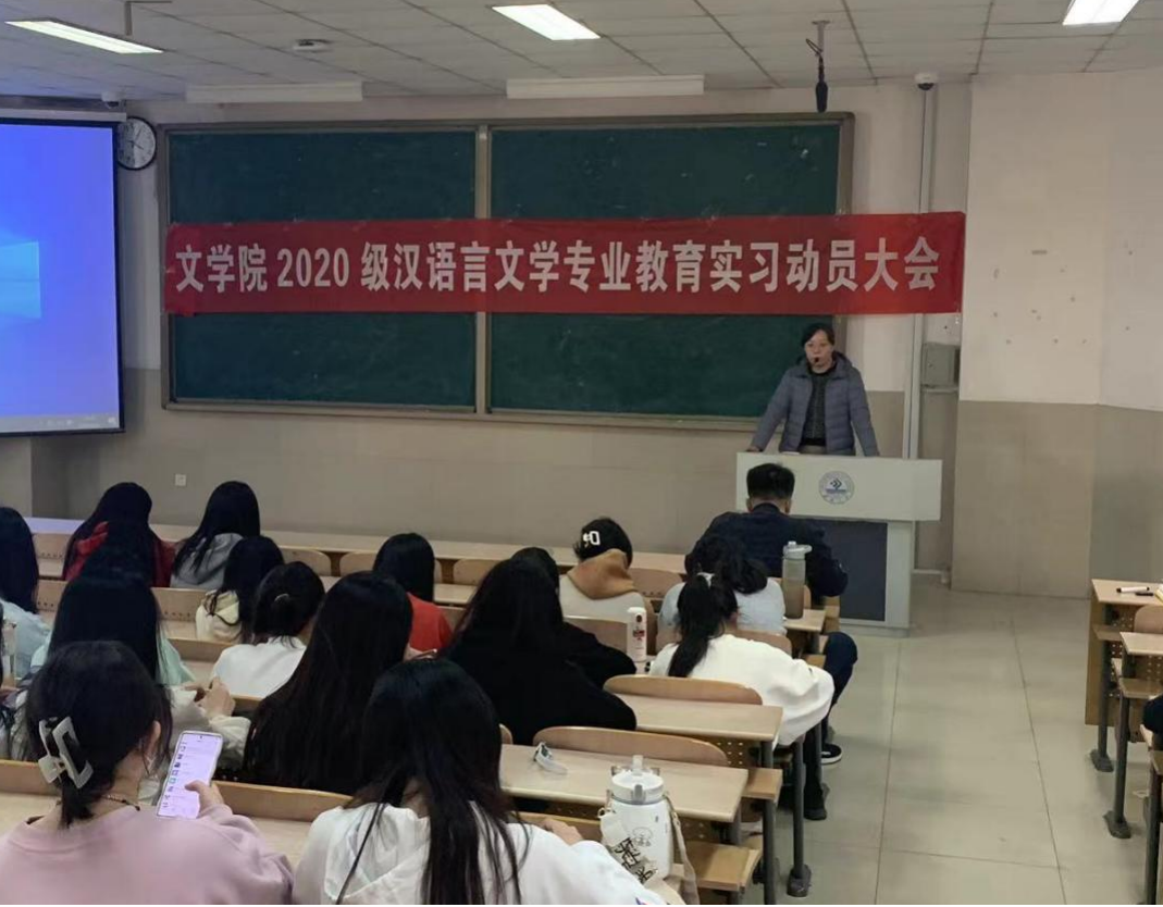 本次汉语言文学专业校外集中教育实习是根据国家级一流本科专业建设、师范类专业二级认证持续改进的要求,以及2018版汉语言文学(师范类)人才培养方案进行实施。为保证全部汉语言文学专业的学生能够顺利进入实习基地实习,学院积极联系济南实验初中、济南五中、济南育贤中学、济南十二中、济南泉新学校、济南育华中学、济南二十七中、七贤中学、泉海学校等济南市区优秀中学,满足了2020级汉语言文学专业全体学生的教育实习需求。学院高度重视本次集中教育实习活动,由分管本科教学王毅进行校外实习的工作部署,各教研室主任、学办和实习指导老师集中研讨实习方案及实习相关规定等问题,切实保障集中教育实习活动顺利开展。为了让学生更快地投入实习动作,学院组织了实习动员会,院长助理王毅、实习负责人蒋莹、辅导员敖游等针对学生实习期间的工作、安全等问题进行了说明,并解答了学生们与实习相关的疑问。为强化管理,各实习中学为每位实习生安排校外实习指导教师及班主任工作实习指导教师,分别指导实习生的教学及班主任管理等工作,切实保障了本次集中实习的教育质量。
