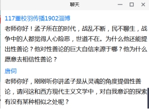 讨论环节,何家兴老师谈了三点感受:第一,经典离我们并不遥远,很多词语沉淀在日常生活中,应善于发现和思考;第二,科学研究应立足于文本,任何结论和观点都应基于扎实的文本对比;第三点,应关注先秦不同学派之间的共同之处。同学们就孟子的“性善论”、孟子与荀子之间的思想异同、孟子“养气说”与管子“精气说”的联系等话题,展开互动。翟教授高度评价调教小说