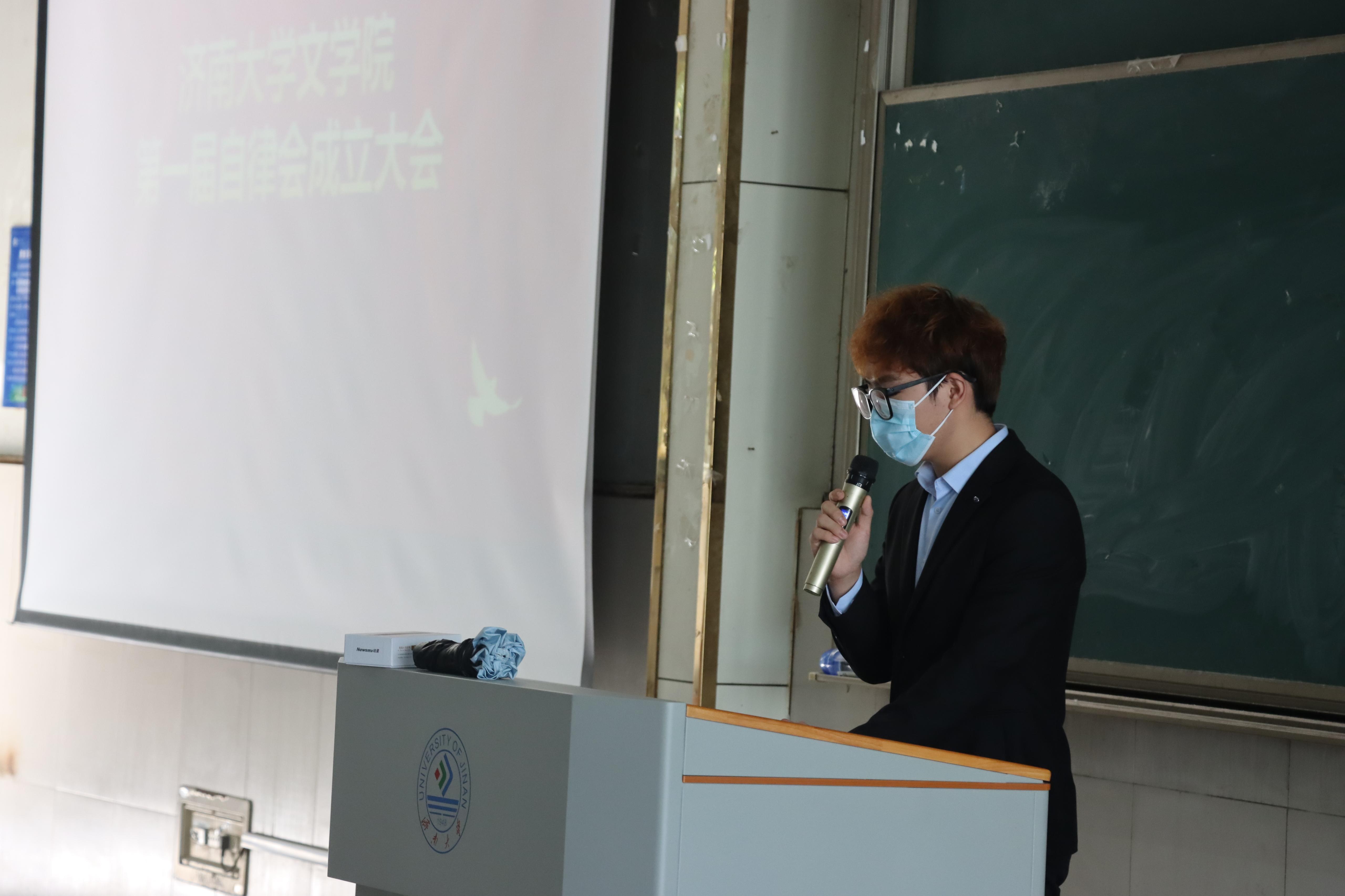 自律会指导教师敖游代表学院向全体参会人员宣布新一届自律会成立并简要介绍了各部门的工作职责。随后,自律会主要负责人顾宏伟代表自律会全体成员向学院做出承诺与表态,会在新形势下积极贯彻学校及学院党委的要求,严肃学风学纪,筑牢安全底线。朱红岩副书记对调教小说