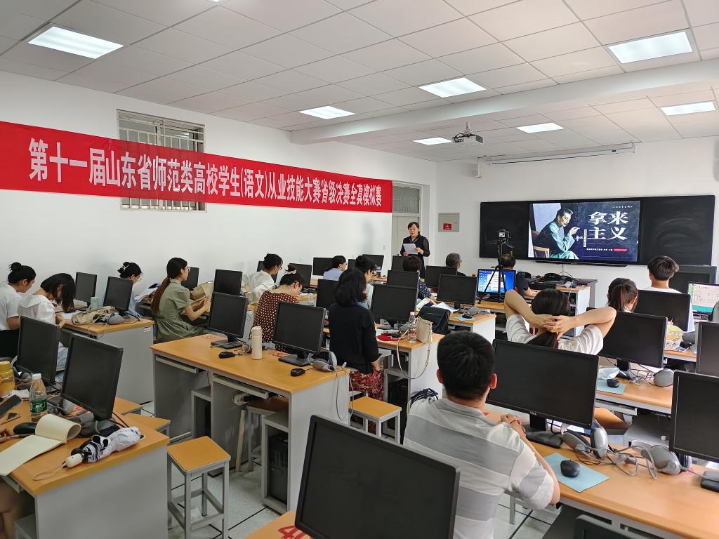 非常重视对师范生实践教学能力的培养,为备战山东省师范类高校学生(语文)从业技能大赛省赛成立指导教师团队,多次邀请经验丰富的中小学一线教师和教研员作为校外评委进行全程指导。通过本次全真模拟赛,选手们熟悉了比赛的流程,积累了比赛经验,对未来的比赛充满信心。