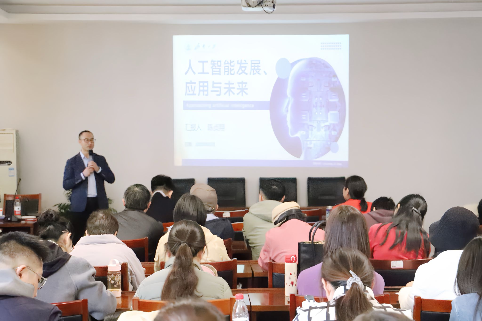 在专题讲座中,陈贞翔处长以深入浅出的方式,系统梳理了人工智能的发展脉络。从1950年图灵测试的提出,到2024年DeepSeek大模型的发布,陈处长通过生动案例展现了AI技术的演进历程。他特别强调,当前人工智能已从单纯的算法演进为具备自主学习能力的智能系统。