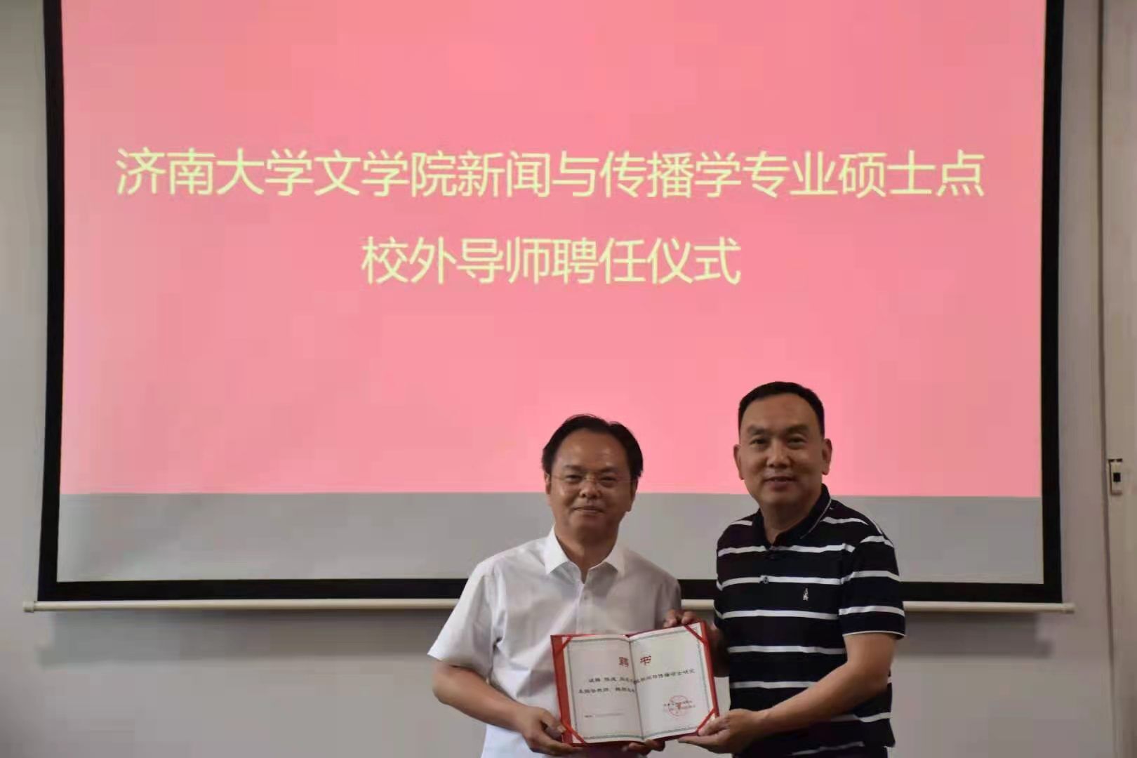 开展合作的意愿,介绍了公司“同心创造,价值共享”的经营理念以及旗下寰视传媒、寰视书社、寰视文创三块产业的业务涵盖领域、近年的发展状况和战略部署。随后,山东寰视文化传播有限公司文创分公司总经理赵静对传媒板块、影视板块、全媒体运营整合传播等板块进行了详细介绍。双方与会人员积极发言,探讨了未来合作的空间和举措,在多个层面达成了共识和合作意向。会上,张兵院长为陈成总经理颁发了专业硕士校外指导教师证书。会后,山东寰视文化传播有限公司总经理陈成一行参观了舜耕书院、调教小说