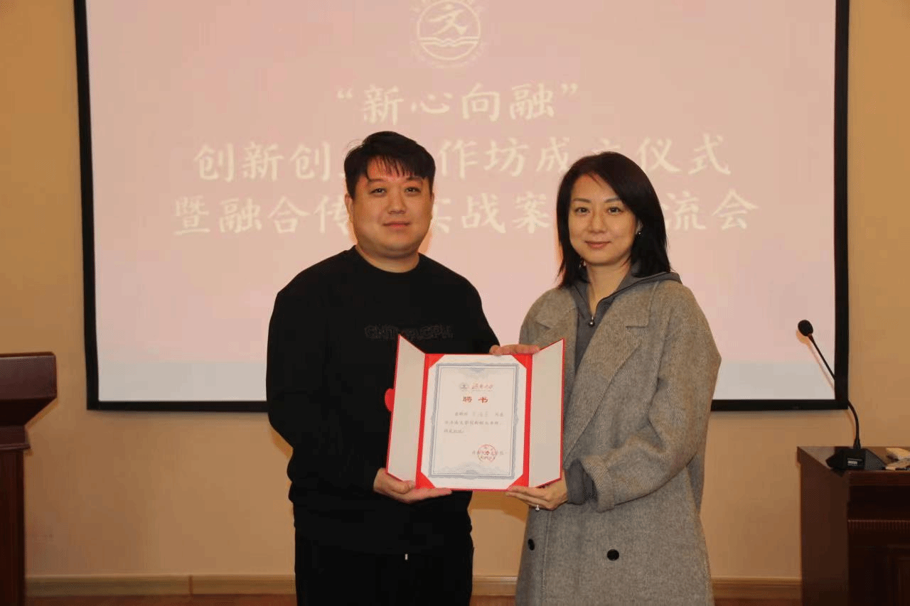 党委副书记、副院长潘颖为栾鸿尧颁发了“创新创业导师”聘书。仪式结束后,栾鸿尧结合真实的典型案例分享了融媒体整合营销的经验和体会,并和同学们进行了热烈的互动。