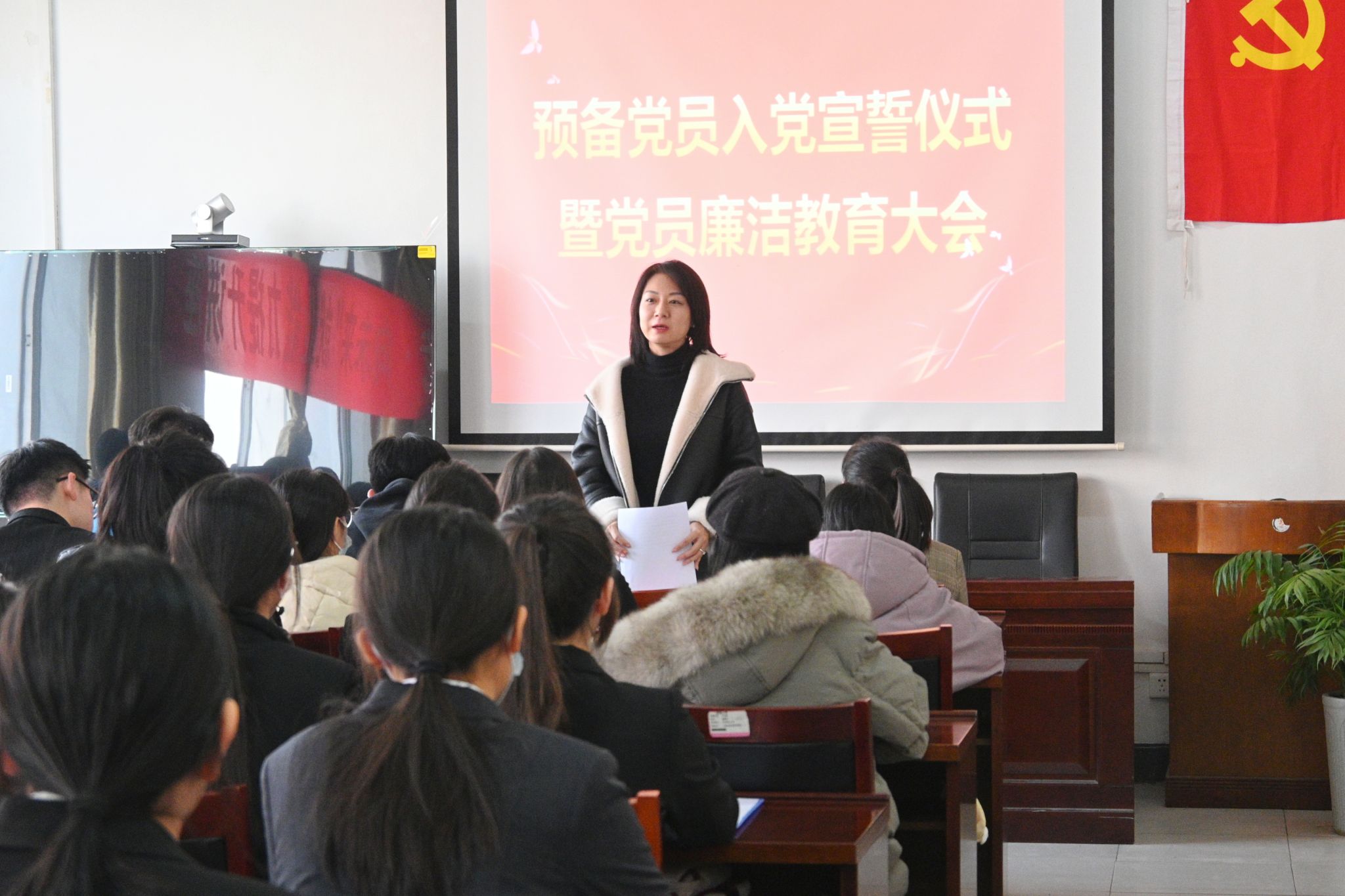 在舜耕书院举行2023年下半年预备党员入党宣誓大会暨学生党员廉洁教育活动,学院党委副书记、副院长潘颖,各学生党支部书记,学生党员代表以及本学期新发展的56名预备党员参加会议,会议由调教小说
