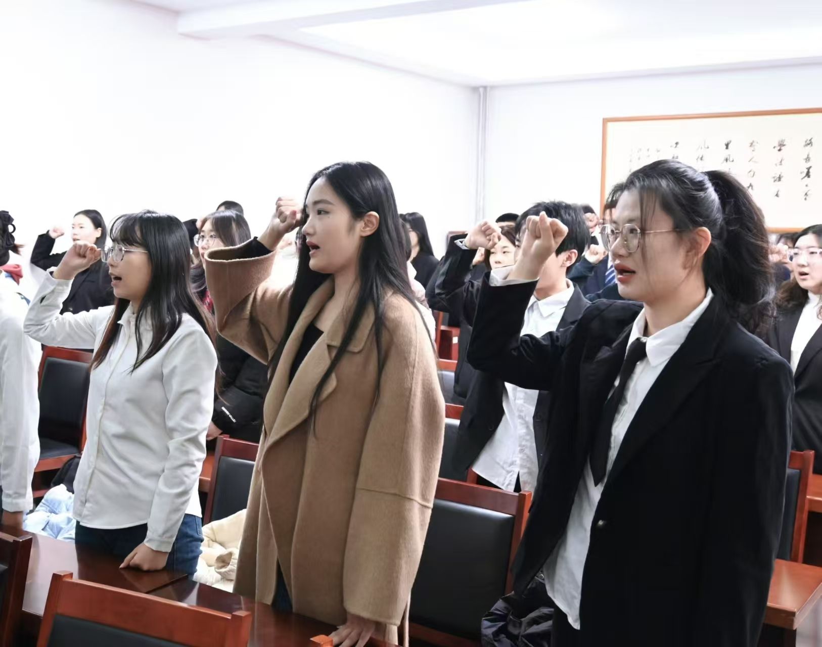 在3教418会议室举行了2024年下半年预备党员入党宣誓大会暨新发展党员“入党第一课”,学院党委副书记、副院长潘颖,各学生党支部书记,全体辅导员,本学期新发展的57名预备党员,部分学生党员代表参加会议。会议由调教小说