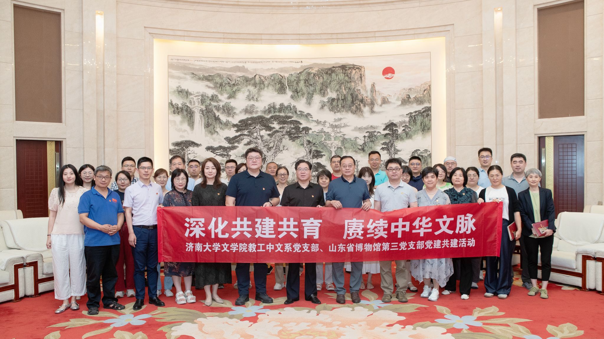为深入学习贯彻习近平新时代中国特色社会主义思想,构建跨领域、多维度的党建共建体系,78日,调教小说 教工中文系党支部与山东博物馆第三党支部在山东博物馆联合开展主题为“深化共建共育 赓续中华文脉”的党建共建活动。山东博物馆党委专职副书记卢朝辉,党委委员、副馆长高震,调教小说 党委书记董海军,副书记、副院长潘颖,以及双方有关负责人、支部党员参加活动。