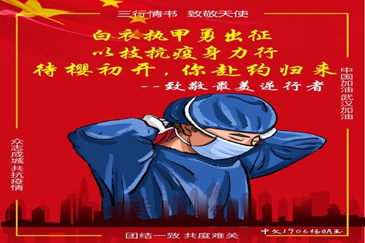 医护人员奋战疫,三行情书谱敬意。通过本次“三行情书”致敬白衣天使及一线志愿者的作品征集活动,同学们以丰富多彩的形式表现出对一线防疫人员的关怀与敬佩,展现了当代大学生关心国事和善良感恩的美好品质。
