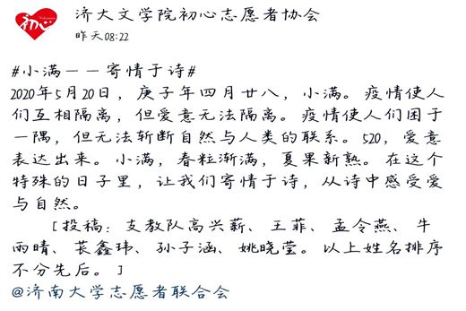 初心志愿者协会支教队组织开展了“自然、爱与诗歌”的投稿活动。